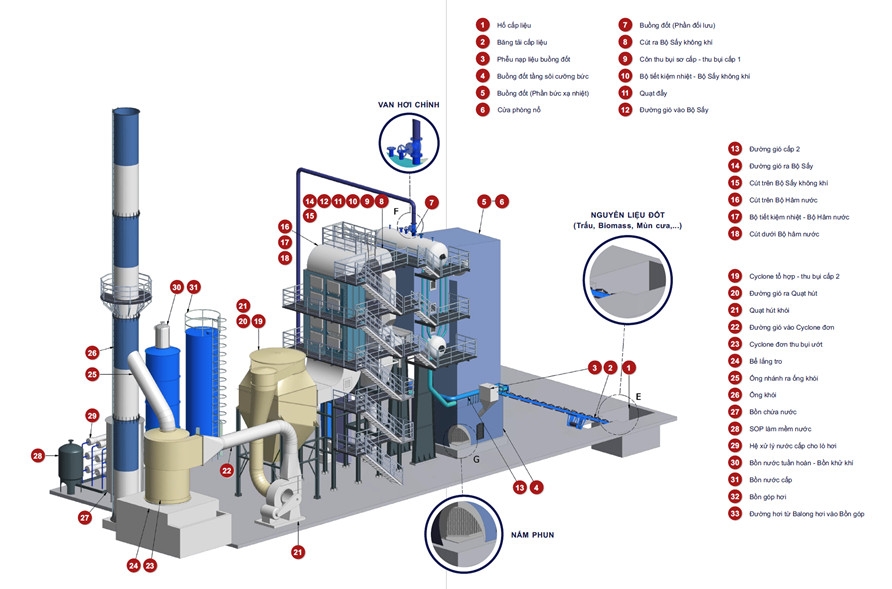 - Công suất: Phù hợp cho dải 20-100 MWth